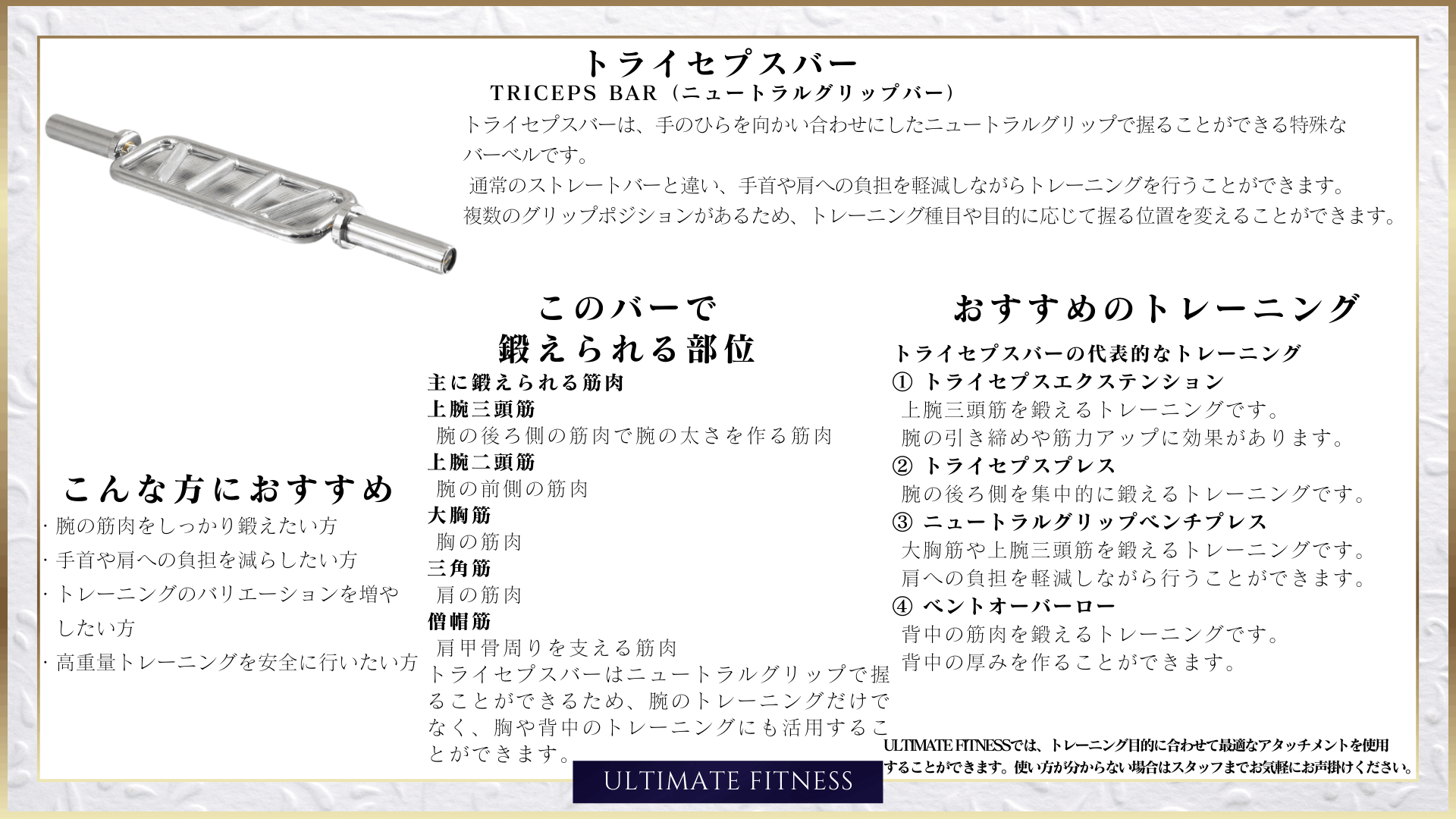 ULTIMATE FITNESSをどうぞよろしくお願いいたします。